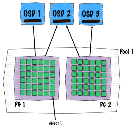 - => this pools contains placement groups (see them as shards of pools)