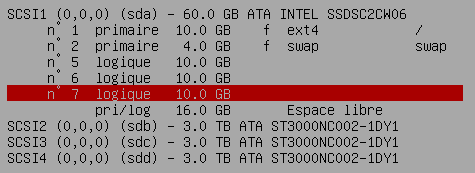 The operating system is installed on the SSD with 3 others partitions for osd journal.