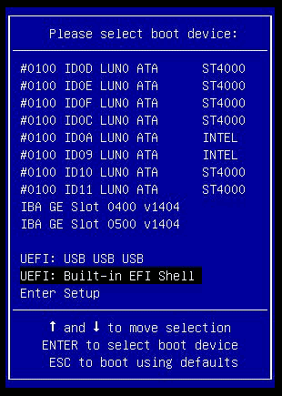 Reboot server and press F11 on startup to access boot menu and start with Built-in EFI Shell.