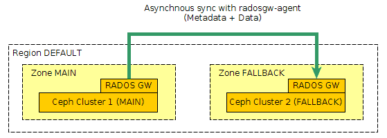 Here I use only one region (“default”) and two zones (“main” and “fallback”), one for each cluster.