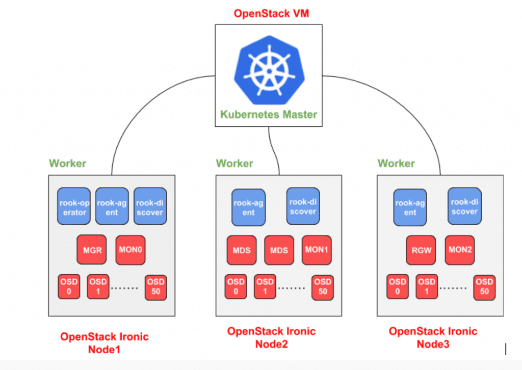 CERN’s cloud-infrastructure is powered by OpenStack, so the virtual environment consisted of OpenStack’s virtual machines while the physical environment consisted of bare metal servers managed by OpenStack Ironic, with each server having 48 disks of 5.5 TB each. My test bed included deploying S3 workloads to gather evaluation metrics such as time to deploy a whole Ceph cluster, time to add a new service (RGW, OSD, MDS) in a cluster, automation of Ceph upgrades and reliability of overall cluster.