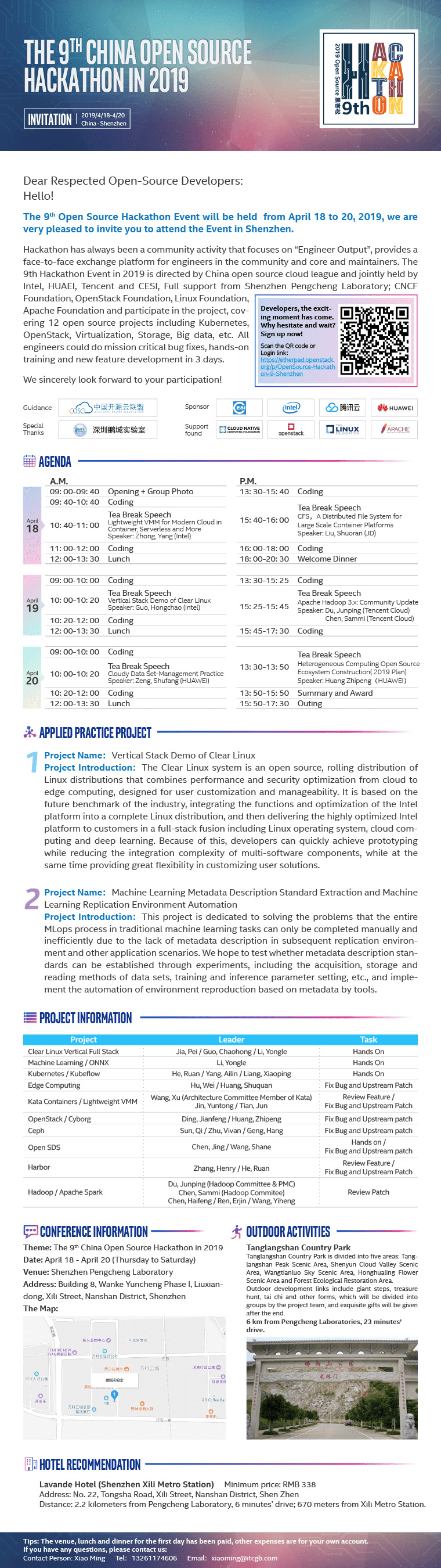 - China Open Source Hackathon, April 18-20 in Shenzhen, CN