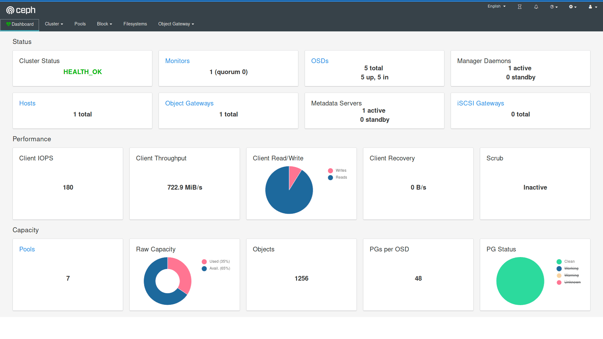 One goal for the team working on the dashboard for Ceph Nautilus was to reach feature parity with openATTIC, and we’re quite happy to report that we’ve achieved and exceeded that goal!