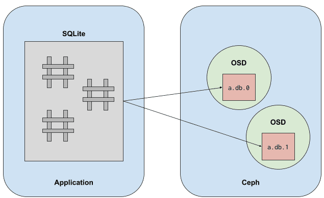 For Ceph, this glue library functions by translating reads, writes, and file locks to corresponding operations on a series of objects in Ceph’s RADOS. This mostly involves striping the SQLite database file over a number of objects in Ceph. (This is something we already regularly do in CephFS and RBD.)