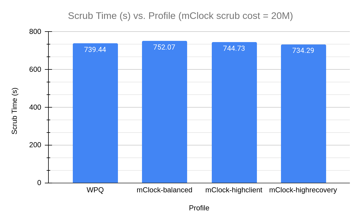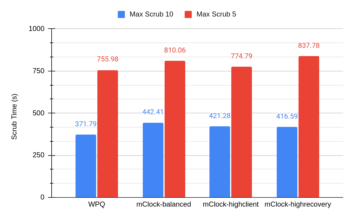 - Scrub operations having a much higher cost of 50 MiB compared to recovery operations that cost 20 MiB