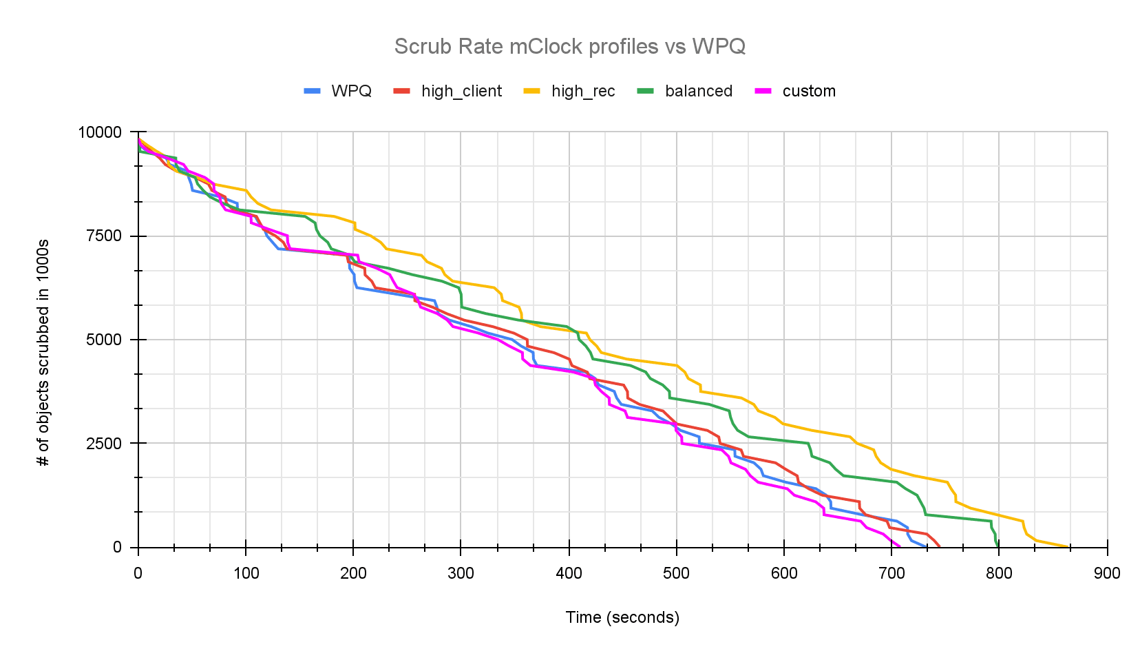 The graph below shows how the scrub looks over time in comparison to the default mClock profiles and WPQ.