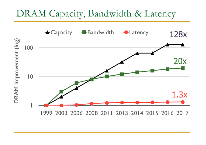 On one hand, memory and IO technologies have been developing rapidly. At the time when Ceph was originally designed, it was deployed generally on spinning disks capable of a few hundreds of IOPS with tens of gigabytes of disk capacity. Modern NVMe devices now can serve millions of IOPS and support terabytes of disk space. DRAM capacity has increased 128 times in about 20 years1. And for Network IO, a NIC device is now capable of delivering speeds upwards of 400Gbps compared to 10Gbps just a few years ago.