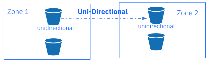 Once the sync group is in place, we need to create a pipe for our bucket. In this example, we specify the source and destination zones: the source will be zone1 and the destination zone2. In this way, we create a unidirectional replication pipe for bucket unidirectional with data replicated only in one direction: zone1 —> zone2.